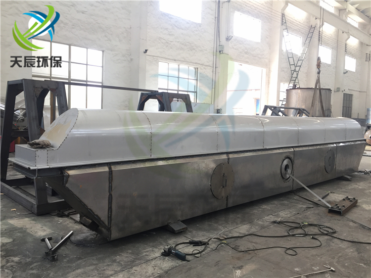 物料自進料進口進入機內,在振動力作用下,物料沿水平面流化床拋擲,向前連續運動,熱風向上穿過流化床同濕物料換熱后,濕空氣經旋風分離器除塵后由排風1:3排出.干燥物料由排料進口排出。
